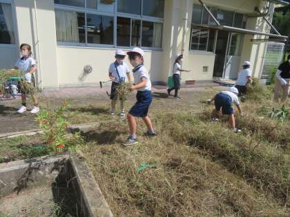 夏休みを終えると、畑には草が生い茂り、育てた野菜の姿が見えないほどになっていました。本来ならこうならないように草取りをできるとよかったのですが、7月の暑さや雨に思うように作業ができませんでした。