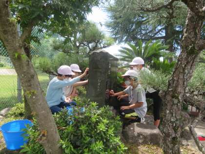 また、子どもたちは歌碑の裏面に寄贈してくださった方の名前を発見し、地域の方が大畑小学校を思う心も感じることもできました。