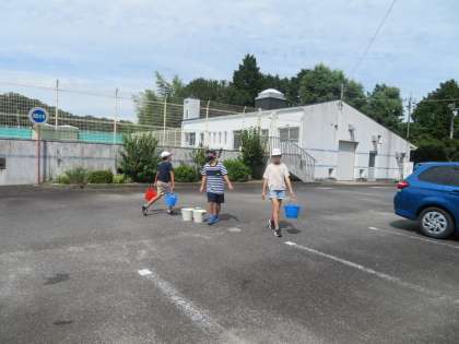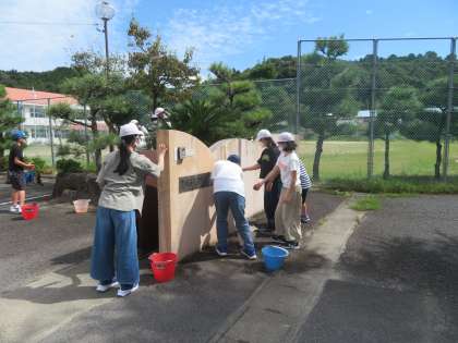 ペンキが落ちて文字がはっきり読めないため、6年生が修復することになりました。