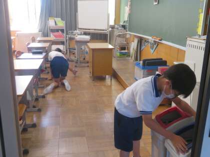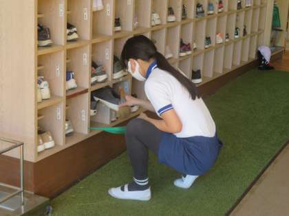 4月に縦割り班そうじが始まったとき、「何やるの?」「どうするの?」「次は?」とたくさんの質問の声が聞こえてきました。だから、後期も最初はきっと同じだろうなと思っていました。しかし、まったく様子が違い、班長の指示に沿って、みんな黙々と取り組んでいます。静かに取り組んでいるだけでなく、そうじのやり方がレベルアップしていて、とても驚きました。