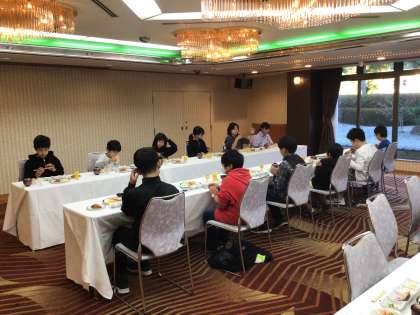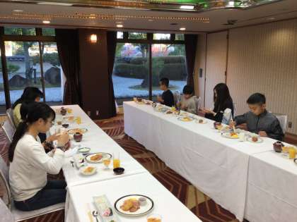 クラシック音楽が流れる中で、美しい庭園を見ながら美味しい朝食をいただきました。みんな朝から元気です。