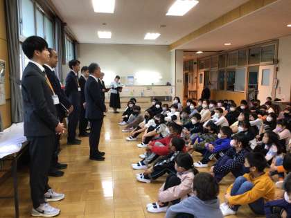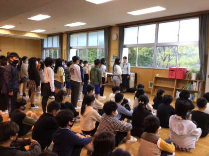 やる気満々の大畑っ子。進級認定を受け、先生たちの自己紹介を聞きました。誰がオムライス好きか覚えているかな?校長先生からは、大畑っ子が交通安全に気を付けていることで、金賞の賞状が届いたお話を聞きました。これからも、命を大切にルールを守って、元気いっぱい過ごしましょう。