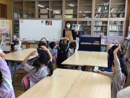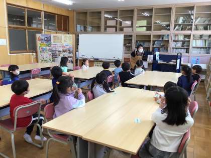 図書室に行って、学校図書館司書の先生から使い方を学びました。子どもたちは、借りられる本の冊数や期間、使い方のルールのお話をとてもよい表情で聞いていました。図書室には、楽しい本がたくさんあります。上手に図書室を利用して、好きな本に出会えるといいですね。