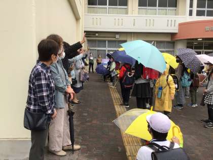 いつもお世話になっている見守り隊の皆さんと大畑っ子の対面式を行いました。見守り隊の方々のおかげで、子どもたちが笑顔で元気に登下校することができています。ありがとうございます。今年度もよろしくお願いいたします。