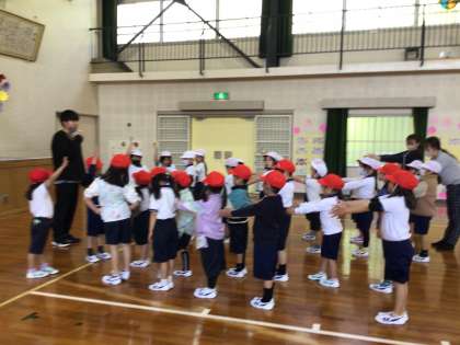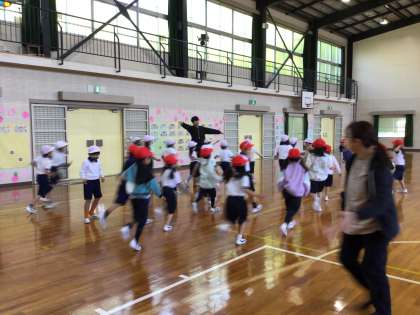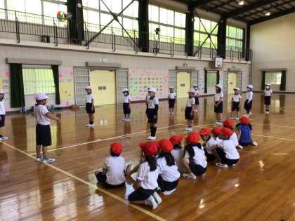 1、2年生の合同体育が始まりました。初回は並び方の確認を行いました。集合場所が変わっても、自分たちで考えて、素早く並び替えていました。これからもたくさん運動して、元気よく過ごしましょう。