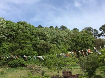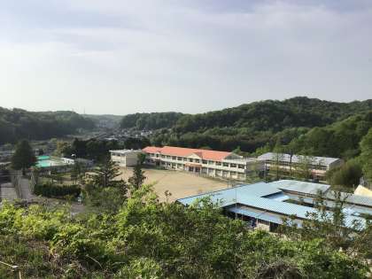 大畑地区の素晴らしさは、たくさんありますが、この時期ならではのものがあります。それは、大畑こども園の背後にたなびく鯉のぼりです。授業参観の後、教職員で鯉のぼりが掲げられているヤッホー山に登り、大畑小学校を眺めました。
