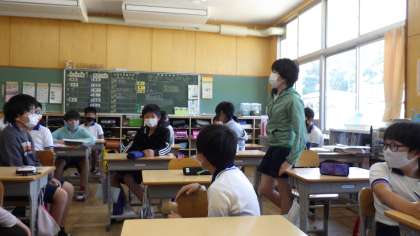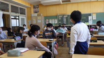 6年生の朝の会では、健康観察の際に一人一人が一言スピーチを行っています。昨日や今日のエピソードを短い言葉でみんなに分かりやすく話すことができています。