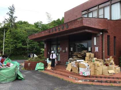 地域の方々のおかげで、たくさんの新聞紙や段ボールなどが集まりました。ありがとうございます。