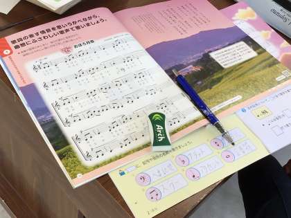 6年生の音楽の授業では、「おぼろ月夜」に出てくる記号や符号を確認しました。記号や符号を意識しながら歌うことは、どんな歌に取り組むときでも重要ですね。