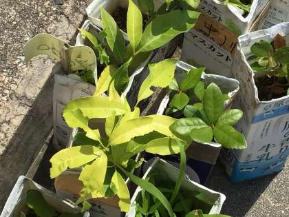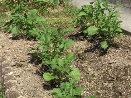 運動場にある栽培園に、6年生が育てているジャガイモ(理科)とドングリ(総合的な学習)の苗があります。陽の光をたっぷり浴びて、すくすく伸びています。
