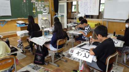 5年生 集中して習字に取り組めています