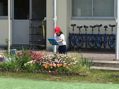 学習用タブレットを使って、国語科「みんなにはなそう」の材料を撮影しました。みんなが気になった大畑小学校にあるものを発表し合うのがとて楽しみです。