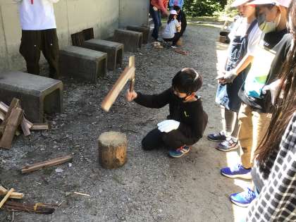5年生野外学習 薪割り 公開日 2023/05/24 更新日 2023/05/24 学校行事 野外炊事に向け、薪割りをしました。 所員の方から、安全な薪割り方法について教えていただき、全員でけがなく終えることができました。 上手に割れると、自然と拍手が起きました。
