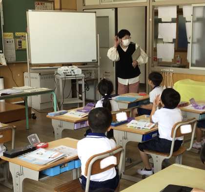 5年生の野外学習に養護教諭が同行している間、大畑小学校の保健室を守ってくださる先生が他校から来てくださいました。みんなが安心できますね。