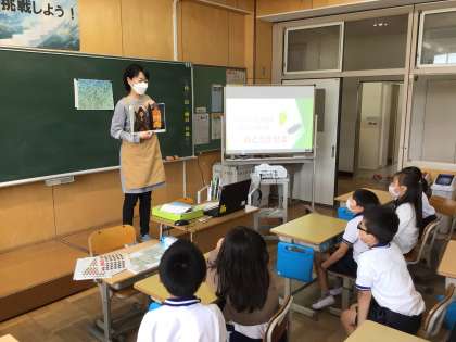 国語の『自然のかくし絵』の授業で、昆虫のほご色やぎたいについて学んでいます。学校図書館司書さんによるブックトークを行い、さまざまな昆虫の本があることを学びました。