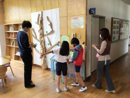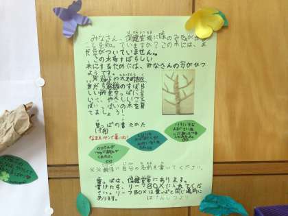 健康委員会では、大畑小や大畑地区の素晴らしいところを書いた葉でいっぱいの木を育てようと、計画をしています。保護者の方、地域の方もご来校の際は、ぜひご覧ください。