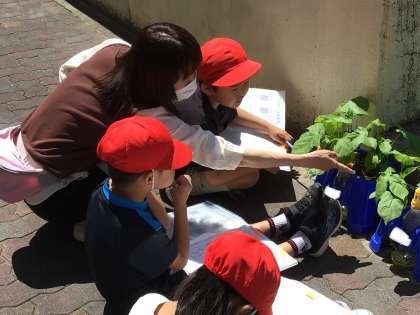 1年生 生活科 公開日 2023/06/23 更新日 2023/06/23 各学年から 1年生のみんなが育てているアサガオが順調に成長しています。初めに出てきた葉っぱと次に出てきた葉っぱの形が違うこと、触った感じが違うこと、色が違うこと等さまざまな変化に気付くことができました。どんどん大きくなるアサガオがこの先どうなっていくのかとても楽しみですね。