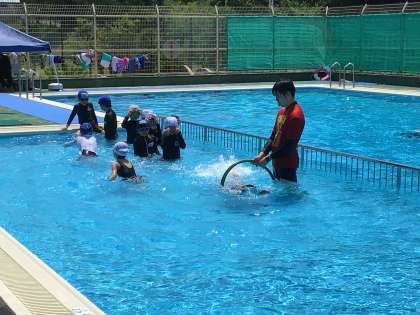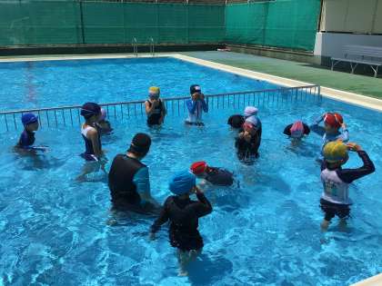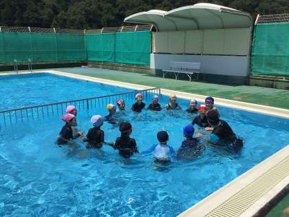 1、2年生 体育 公開日 2023/06/19 更新日 2023/06/19 各学年から 着替えもどんどん上手になってきています。更衣室のロッカーをうまく使い、プールサイドに持っていくものとそうでないものを分けています。今日は2つのグループに分かれて、水遊びを行いました。頬だけ水につける、鼻先をつける、目をつけるなど少しずつ段階を踏んで、水に顔をつけられるようにしています。授業の最後に行った宝探しでは、いくつも宝を見つけられた子がいました。