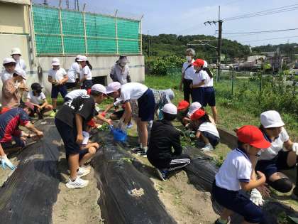 1、6年生 サツマイモの苗を植えました 公開日 2023/06/23 更新日 2023/06/23 各学年から 地域の「なでしこ会」からいただいたサツマイモの苗を植えました。事前に、校内整備員と6年生で、畑を耕したり、畝を作ってマルチをかけたり準備をしてきました。今日は、「なでしこ会」の方々もボランティアで来校され、子どもたちが苗を植えるお手伝いをしてくださいました。 甘くておいしいサツマイモができるように、お世話をしていきます。