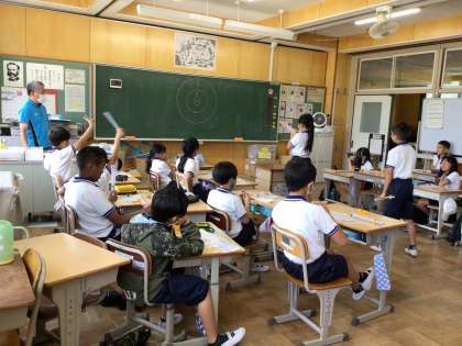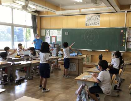 4年生 理科「空気鉄炮的当て大会」 公開日 2023/06/20 更新日 2023/06/20 各学年から 理科の「閉じこめらた水と空気」の学習のまとめとして、空気鉄炮で的当てをしました。栓にするスポンジの詰め方や空気を押すタイミングなどを工夫しながら、的を狙いました。ポンと気持ちよい音と一緒にスポンジが飛んでいく様子は、とても愉快なものでした。