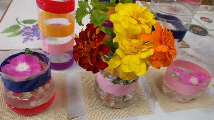 今日はカラフルなペットボトル花びんが職員室や校長室に届けられました。花を飾る前からとても美しく、かわいらしい花びんで、わくわくしながら作ってくれたのだなあと、その時の様子を思いうかべながら受け取りました。