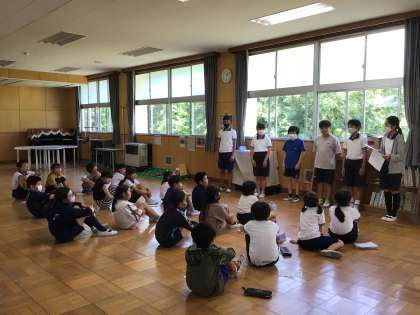 始めに、それぞれの班で掃除の様子を振り返りました。その後で、「学校ぴかぴか大作戦」の項目を確認しながら、各掃除場所に分かれて、活動しました。学校をぴかぴかにして、気持ちよく夏休みを迎えたいですね。