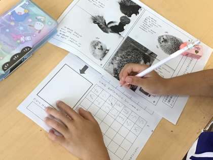 豊田市中央図書館から講師をお招きして、国語科「どうやってみをまもるのかな」の発展授業をしていただきました。教材を読んで、はりねずみの体のつくり、身の守り方、敵が来たらどうするかなどについて考えました。動作化では、はりねずみになり切っていました。たくさんの本と出会うために、中央図書館にも足を運びたいですね。