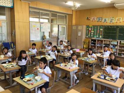1年生 給食美味しいな 公開日 2023/07/07 更新日 2023/07/07 各学年から 昨日の「七夕献立」に続いて、今日も美味しく給食をいただきました。入学したばかりの頃は、パンの袋を開けるのにも一苦労でしたが、今では、開けるだけでなく、食べた後の袋を上手に結んで小さくできるようになりました。いろいろな方面でできることが増えています。