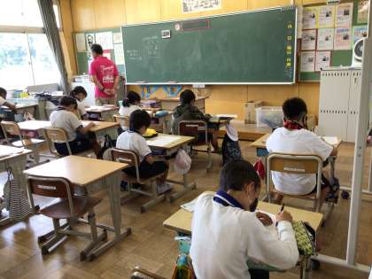 今日は、「垂直・平行と四角形」のテストを行いました。三角定規を使って平行な直線を描いたり、コンパスも使って平行四辺形を描いたりするなどの問題がありました。この単元で学んだことは、5年生「合同な図形」や6年生「図形の拡大と縮小」、さらには中学1年生の数学の学習へとつながっていきます。描き方を確実にマスターして、上学年につなげていきたいです。