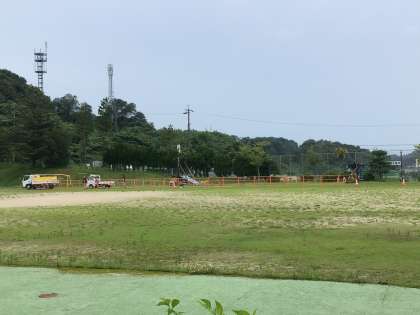 今日から遊具の撤去・設置作業が始まりました。まずは、運動場南側にフェンスを設置するための杭打ちをしていました。撤去・設置作業は8月31日までです。作業の間、ご迷惑をおかけいたしますが、9月から新しい遊具で楽しく遊ぶ子どもたちを想像して、しばらくお待ちください。