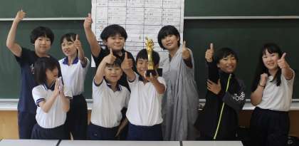 「第1回ばたリンピック〜水泳大会〜」の閉会式を行いました。先生から発表される総得点数を聞いて、全力で喜ぶ子ども達の姿が印象的でした。今回の記念すべき第1回大会のチャンピオンは、黄チームでした。赤、白、緑チームも優勝した黄色チームを賞賛しつつも、第2回大会への意欲を高めました。各チームで協力をして次の秋季大会で優勝するチームはどのチームになるのか、今後が楽しみです。