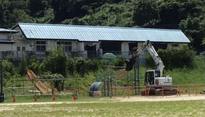 工事の様子を見ていた子どもたちが、重機のことを、「ブラキオサウルス」と例えていました。