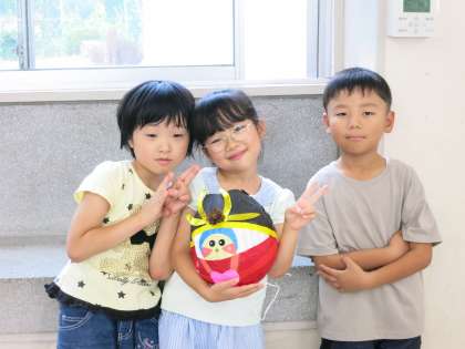 豊田市立逢妻中学校の先生が、大畑小のホームページを見て、「あまりのかわいさに作成してみました。学校や地域のよさがつまった、素敵なキャラクターですね」と言って、学校マスコットキャラクター「ばたっぴぃ」の飾りを作成してくださいました。