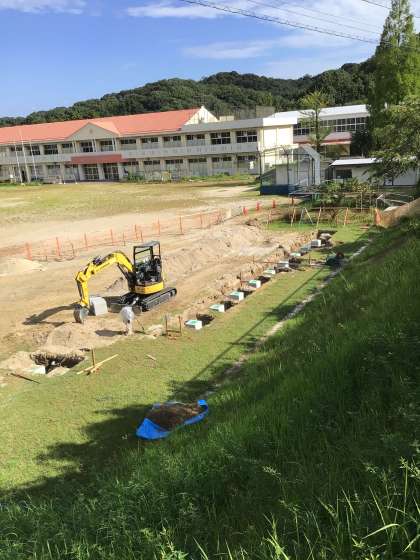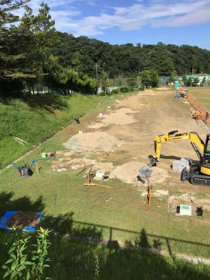 遊具の設置工事が進んでいます。遊具を設置するための基礎が置かれ始めました。この基礎の上に遊具が立ち並ぶことになります。どのようになっていくのか楽しみにしていてください。