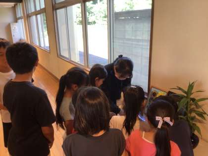 休み時間にも大畑小学校マスコットキャラクター「ばたっぴぃ」