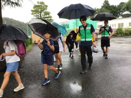 今日も下校指導を行いました 公開日 2023/09/06 更新日 2023/09/06 お知らせ 本日は下校時に雨が降っていました。線状降水帯ができるという予報もあり、教員が下校指導を行いました。途中、大雨になることはなく、無事にみんなが下校できて安心しました。