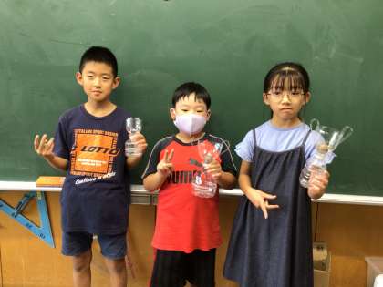 3.4年生 「スーパー土団子づくり」その2 公開日 2023/09/06 更新日 2023/09/06 各学年から 土団子が出来上がったら、丸くて傷がなくてよく輝いている土団子コンテストをしました。上位に選ばれた人は、手作りトロフィーをいただきました。 家に持ち帰ってからも、手でころころ転がし続けるともっともっと光輝くスーパー土団子になるそうです。