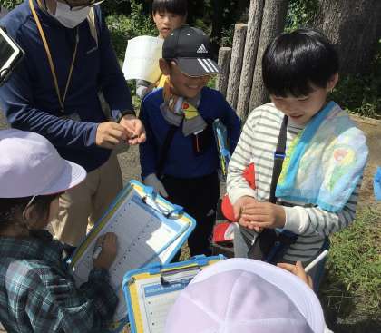 まとめの時間には、見つけた生き物の名前をワークシートに書き込んだり、講師の先生方から捕まえた生き物の名前や生態について教えていただいたりしました。