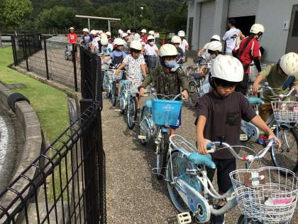 4年生は、交通安全学習センターで安全な自転車の乗り方について学習しました。最初は、トラックの死角や内輪差についての実演を見て、危険性を学びました。次に、2つの班に分かれて、室内で交差点での危険や対応策を学んだり、外で実際に自転車に乗って、安全な乗り方を学んだりしました。中学生になると多くの児童が自転車を使って通学するようになります。今回学んだことを忘れずに、安全に自転車に乗ることを心がけてほしいです。
