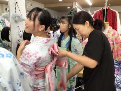 色とりどりの浴衣から好きな浴衣を選び、着付けていただきました。