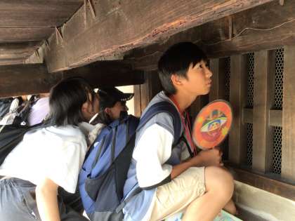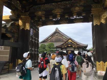 修学旅行 1日目 二条城 公開日 2023/09/26 更新日 2023/09/26 各学年から 世界遺産の二条城へ来ました。 「キュッキュッ」と鳴る、うぐいす張りの床を歩きながら、大政奉還の舞台を見学しました。