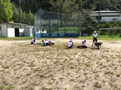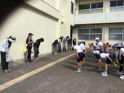 草取りボランティアの皆さんと一緒に その2 公開日 2023/09/26 更新日 2023/09/26 各学年から 5年生は、一輪車を上手に扱い、取って山盛りになっている草を集めていました。6年生がいない間、大畑小学校の最高学年として、下級生の手本となるように頑張っています。草取りの後、ボランティアさんに2年生が代表でお礼の言葉を伝えました。