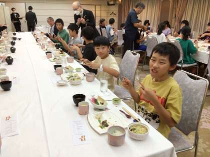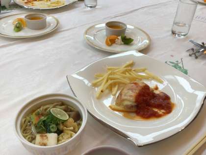 上手にナイフとフォークを使って、食事ができました。