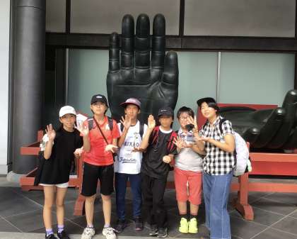大仏ポーズで、「はい、チーズ!」