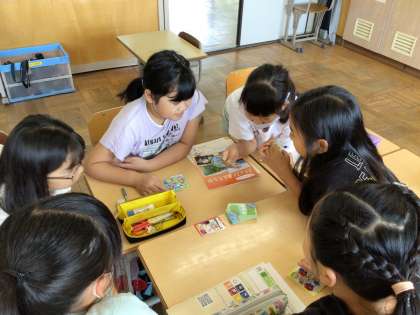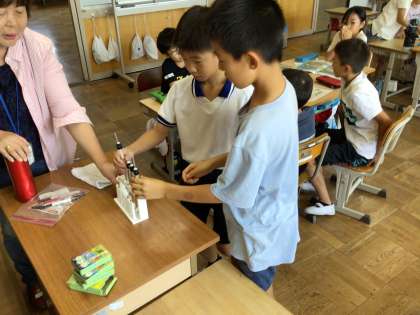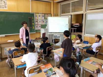 4年生は、県の温暖化防止推進員の方に来ていただき、地球温暖化防止について学習しました。1時間目は、温暖化の原因やその結果どのような困ることが起きるのか、どんな生活をするとよいか、などを教えていただきました。2時間目は、グループに分かれ、温暖化によって水が増える実験やカードゲームによるecoについての学習をしました。楽しみながら温暖化防止の大切さを学びました。