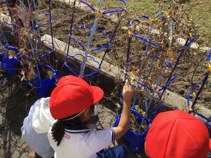 アサガオのたねがとれました。「先生!1つの入れものから5個もとれたよ」とわくわくした表情で伝えに来る子がいました。5月にまいたたねは、5つでした。1年生のみんなのアサガオからはいくつのたねがとれたかな。数えるのが楽しみですね。