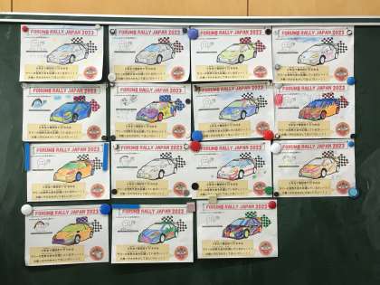 ラリーを応援しています 公開日 2023/10/18 更新日 2023/10/18 学校行事 先日5年生がバッジとともに持って来てくれたぬりえのラリーカーに色を付けました。どんな色をつけようか、わくわくしながら一生懸命色塗りをしていました。大畑小学校マスコットキャラクター「ばたっぴぃ」と共に、ラリーを応援しています。