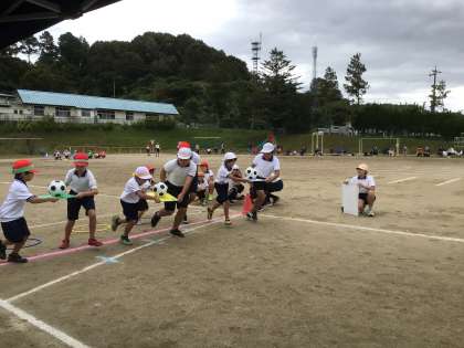 ボールを大畑小の大切な宝物に見立て、リレーをして運びました。