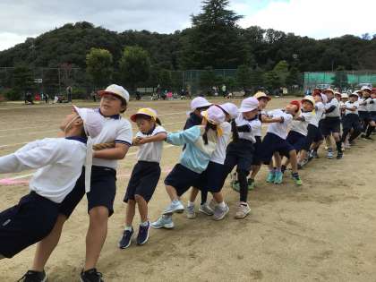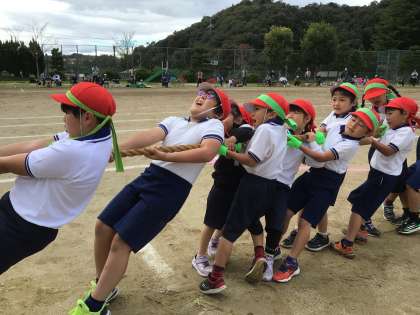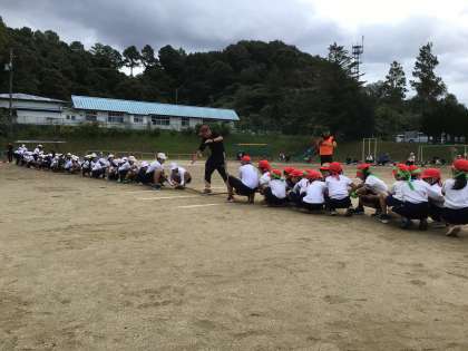 今年の赤白対抗種目の最後は、子どもたちにとっては初めての綱引きを全校で行いました。
