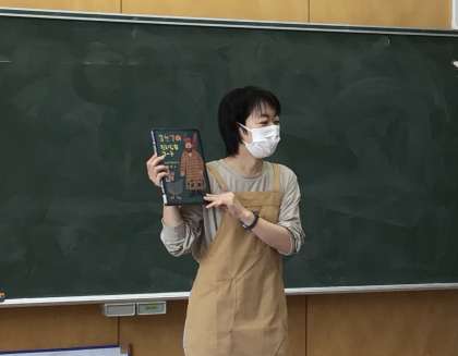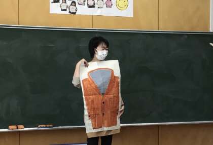 学校図書館司書による読み聞かせ(パネルシアター)がありました。工夫を凝らした小道具を使っての読み聞かせに、1年生の子ども達は目を輝かせながら聞いていました。「司書の先生がまた来てほしい」「楽しかった」「あのベストを切り取って、身につけたい」などとつぶやく子達もいました。